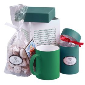 материал : коробка, елочка - картон; кружка - фаянс; тубус - картон; открытка - дерево размер : коробка: 11,8x10,8х17,2 см; елочка 9,1х5,9х0,1 см; кружка: высота 9,5 см, диаметр 8 см; тубус: высота 10 см, диаметр 6,5 см; деревянная открытка: 6х8х0,4 см