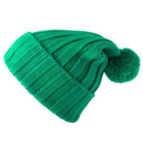 | Однослойная шапка крупной вязки с рельефным рисунком (резинка 3x3). |