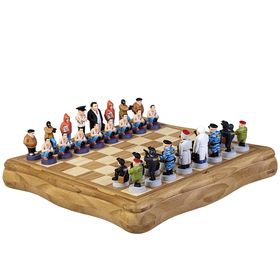 материал : фигуры - олово, пластик; шахматная доска - дерево, бамбук размер : 44х44х7 см