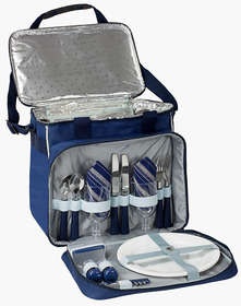 | В комплекте: изотермическая сумка, приборы из нержавеющей стали, тарелки, пластиковые бокалы для вина, салфетки из хлопка на 2 персоны, перечница, солонка, нож сомелье, коробка для масла |